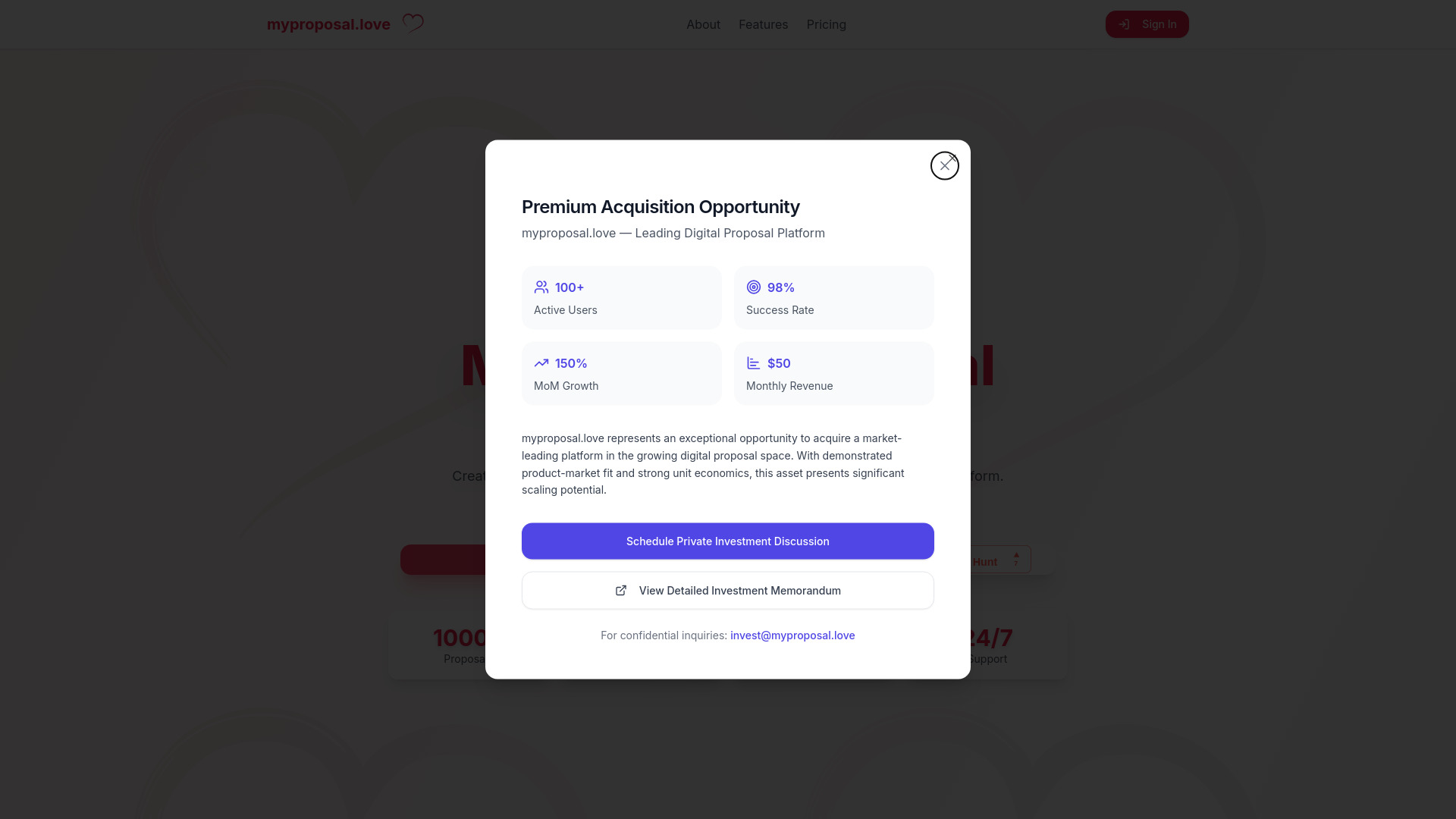 AI platform for personalized marriage and Valentine's Day proposals.