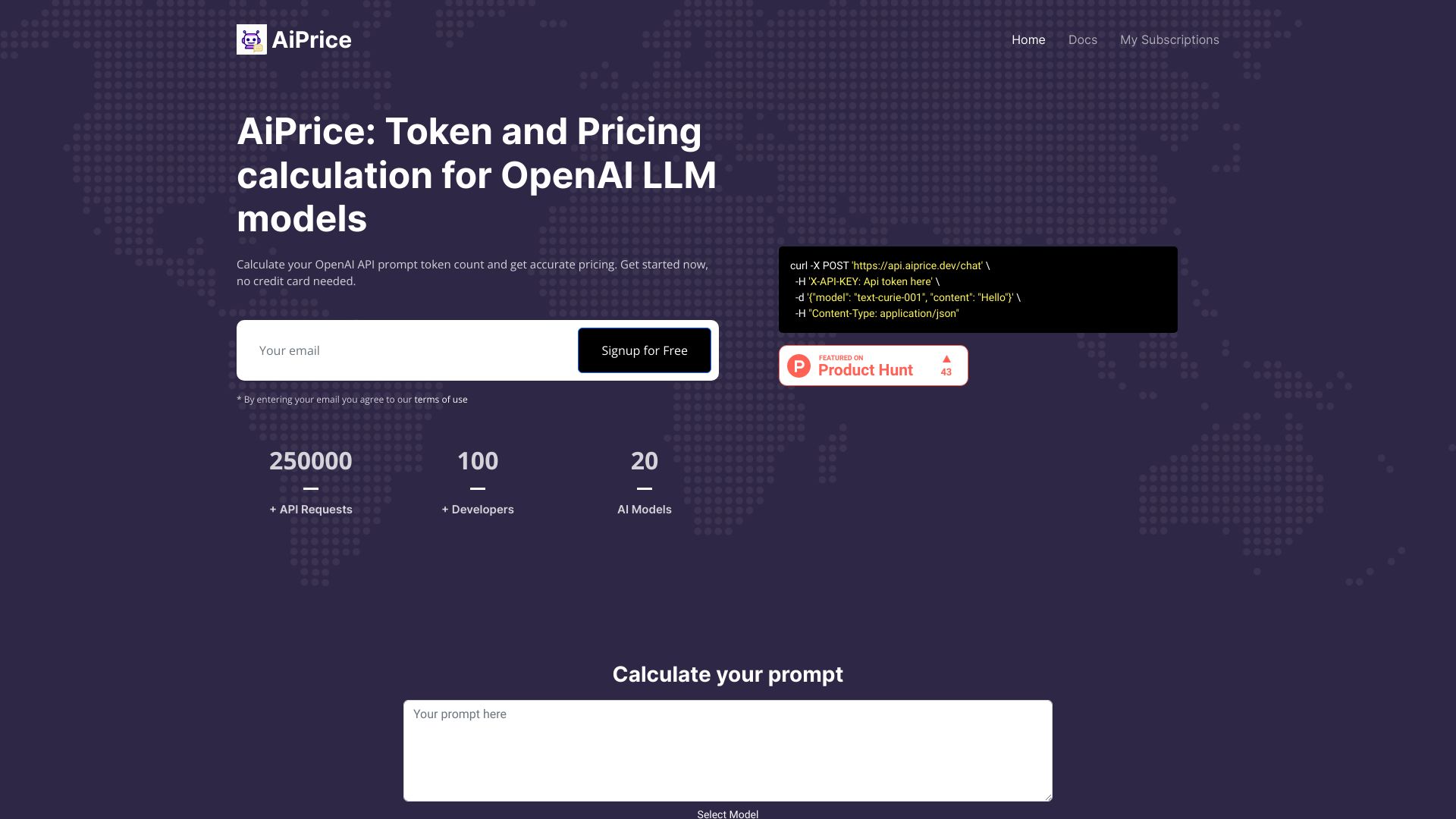 Calculate cost of prompt sent to OpenAI API with AiPrice's token counting and pricing estimation.