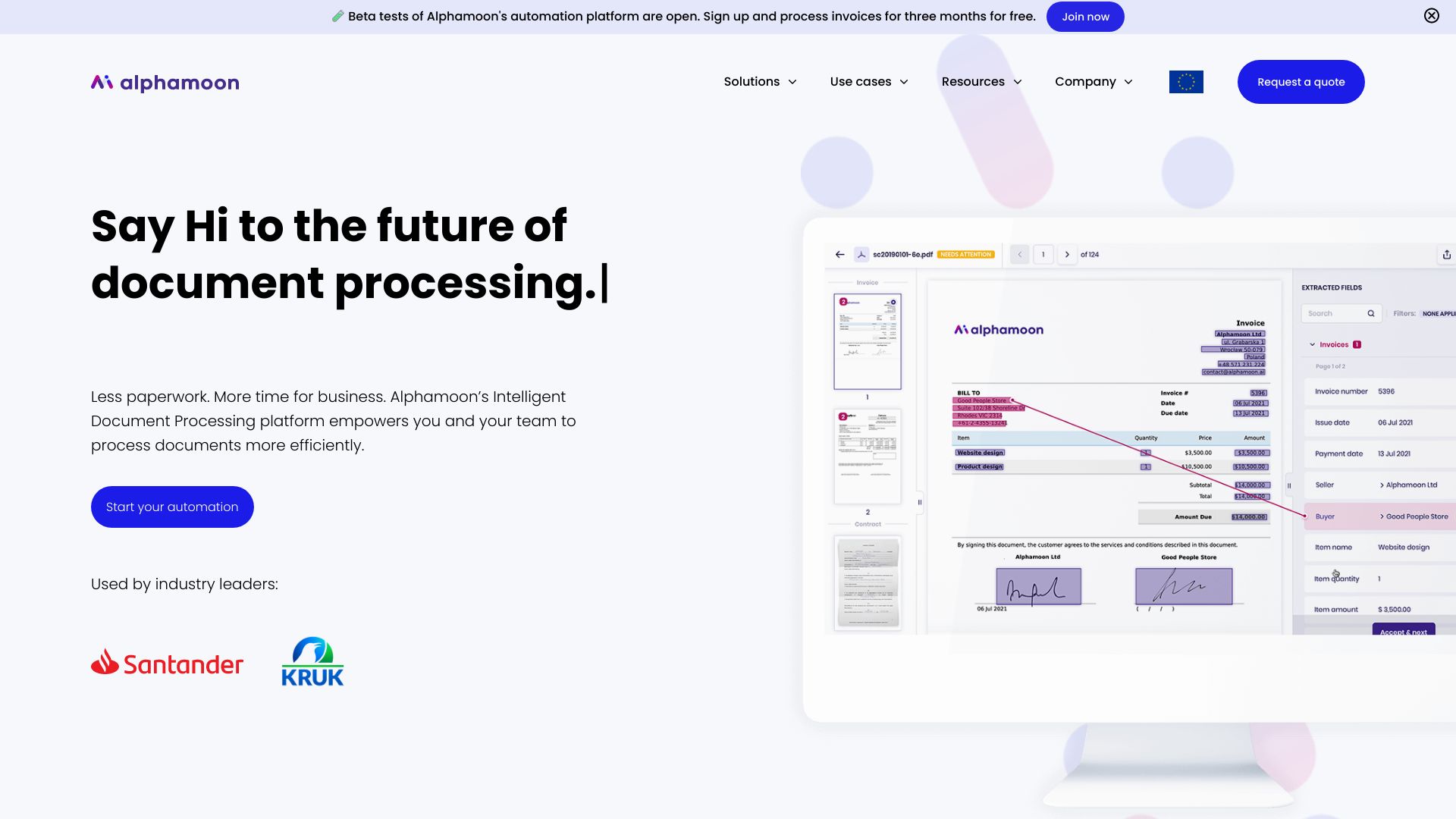Alphamoon is an AI platform that streamlines document processing and enhances productivity.