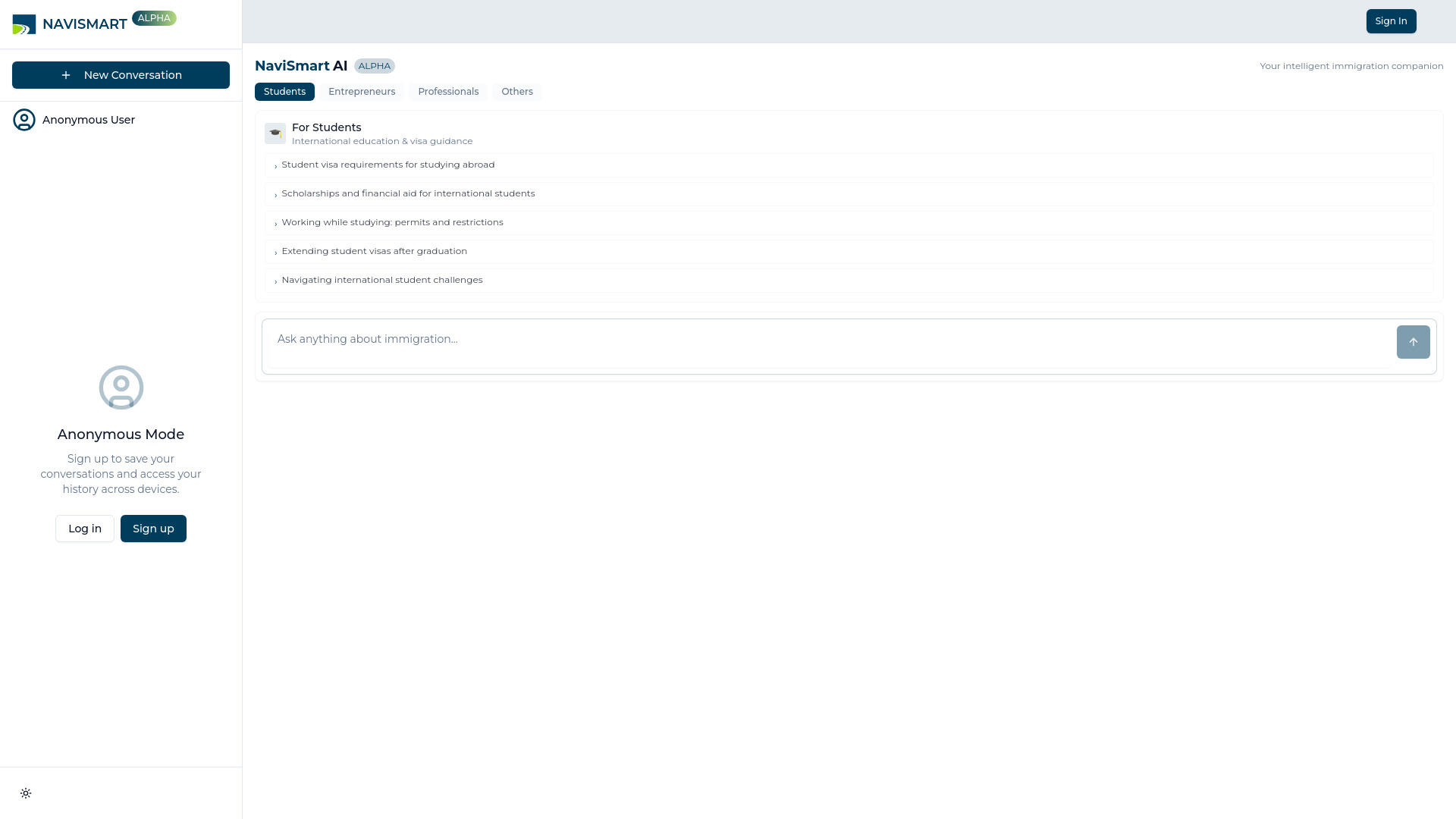 AI assistant for immigration guidance and support.