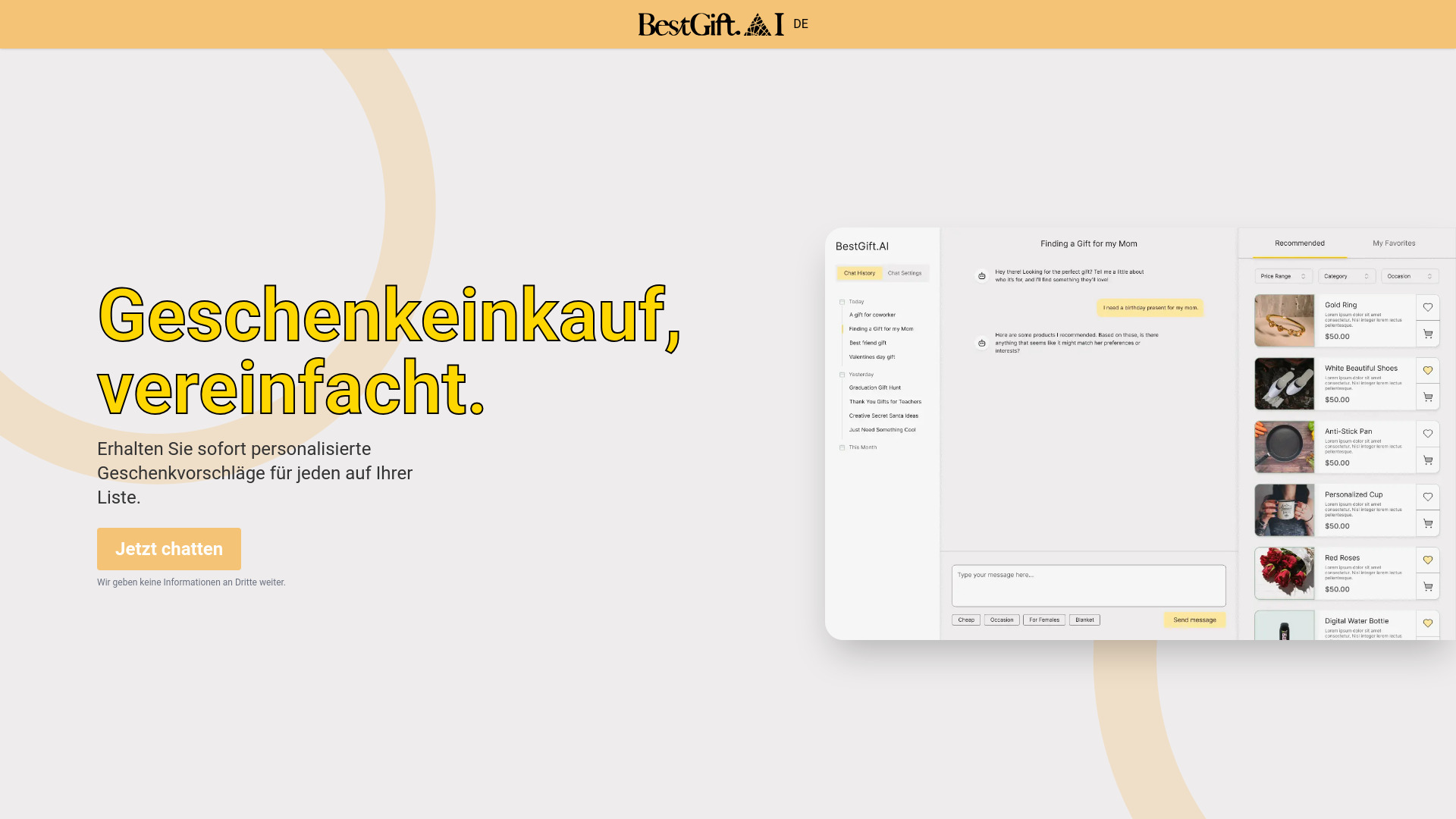 AI assistant for personalized gift recommendations for any occasion.