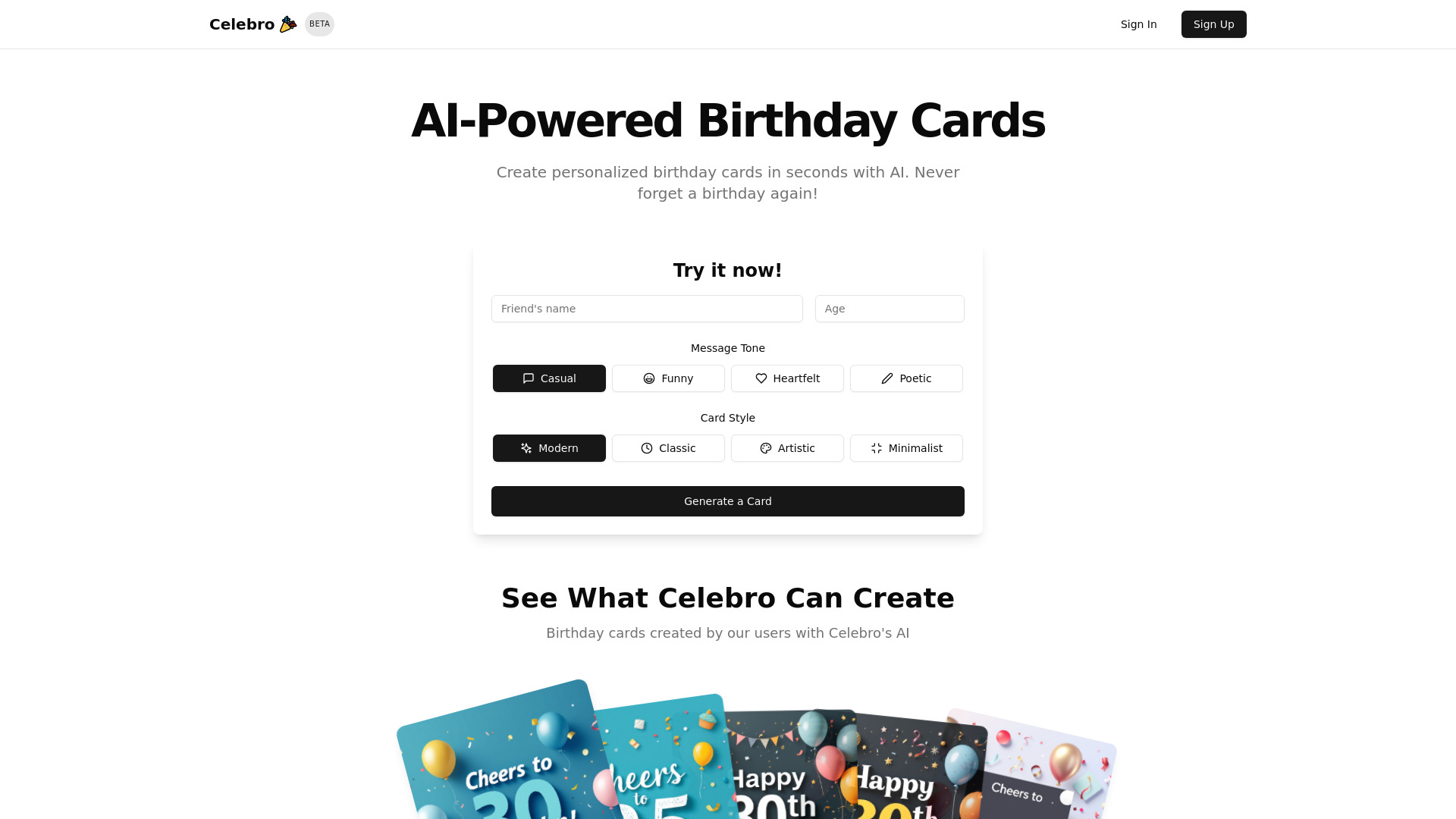 AI platform for personalized birthday cards and reminders.