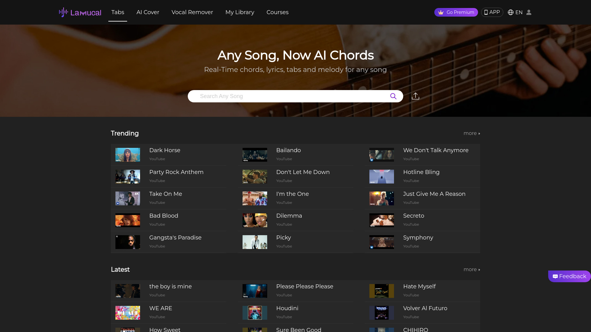 AI music tool for tabs, chords, and vocal covers.