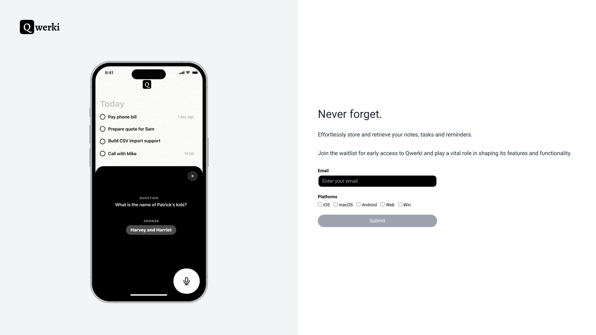 Qwerki is a web app that boosts productivity by managing tasks and organizing information.