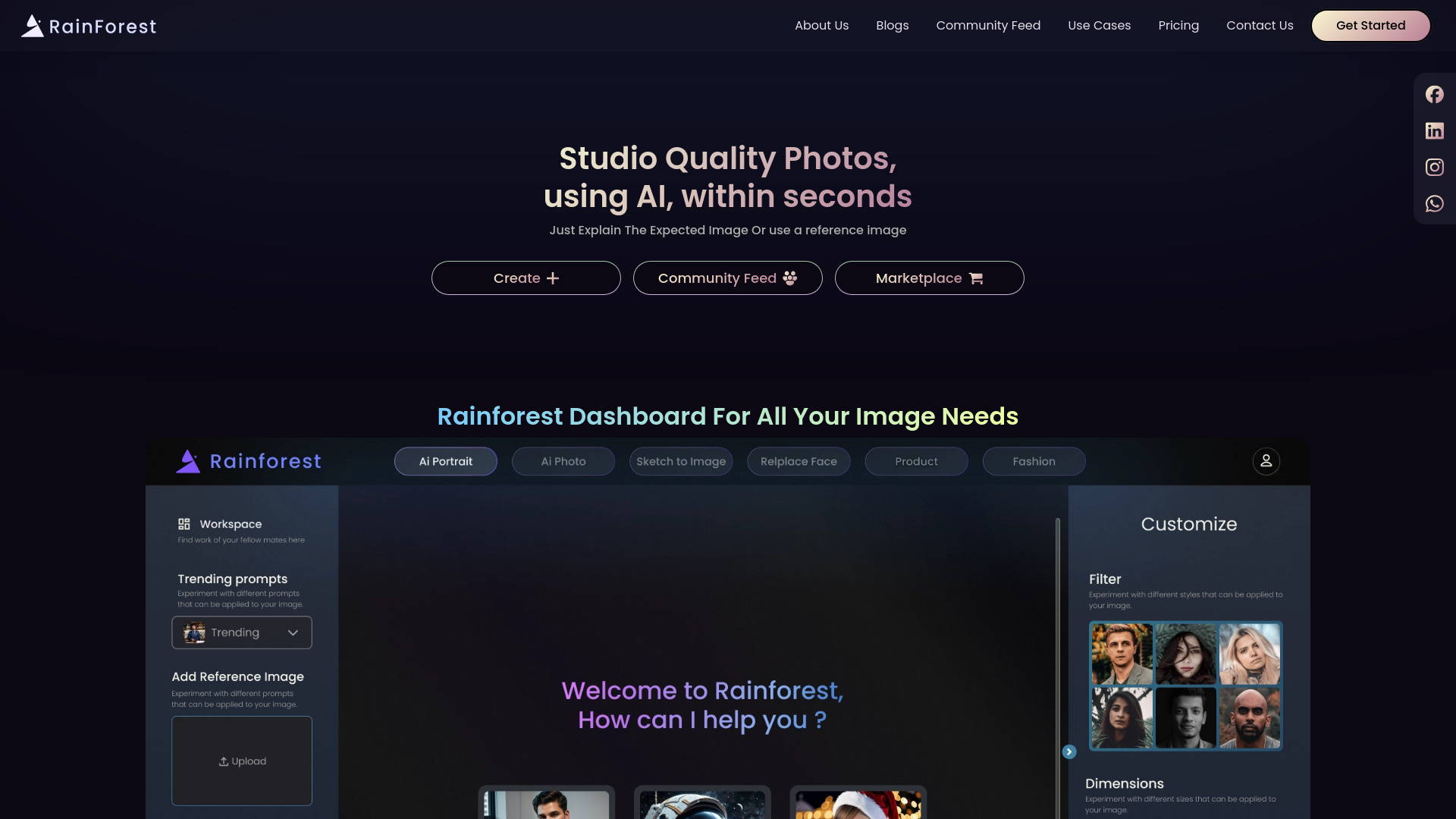 Create unique photos with AI models and enhance them with templates and options.