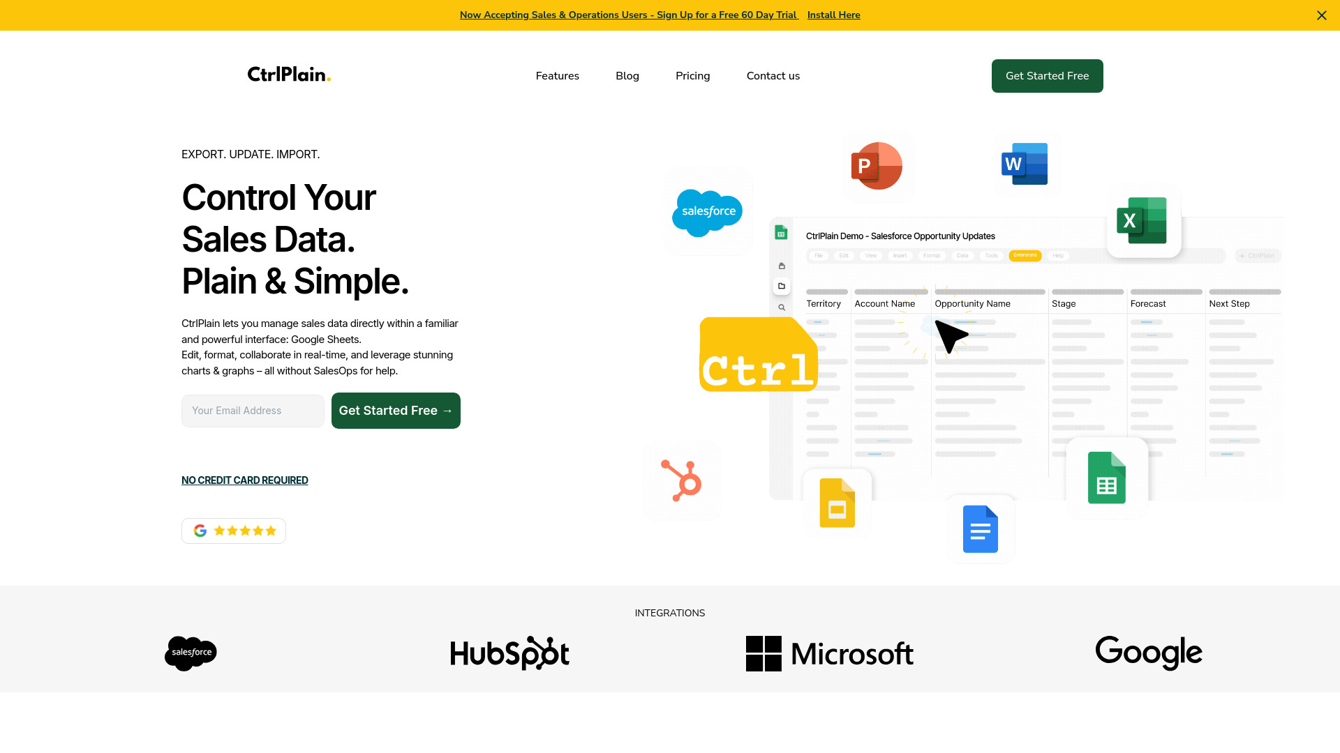 Transforms Google Sheets into a Salesforce interface for sales teams.