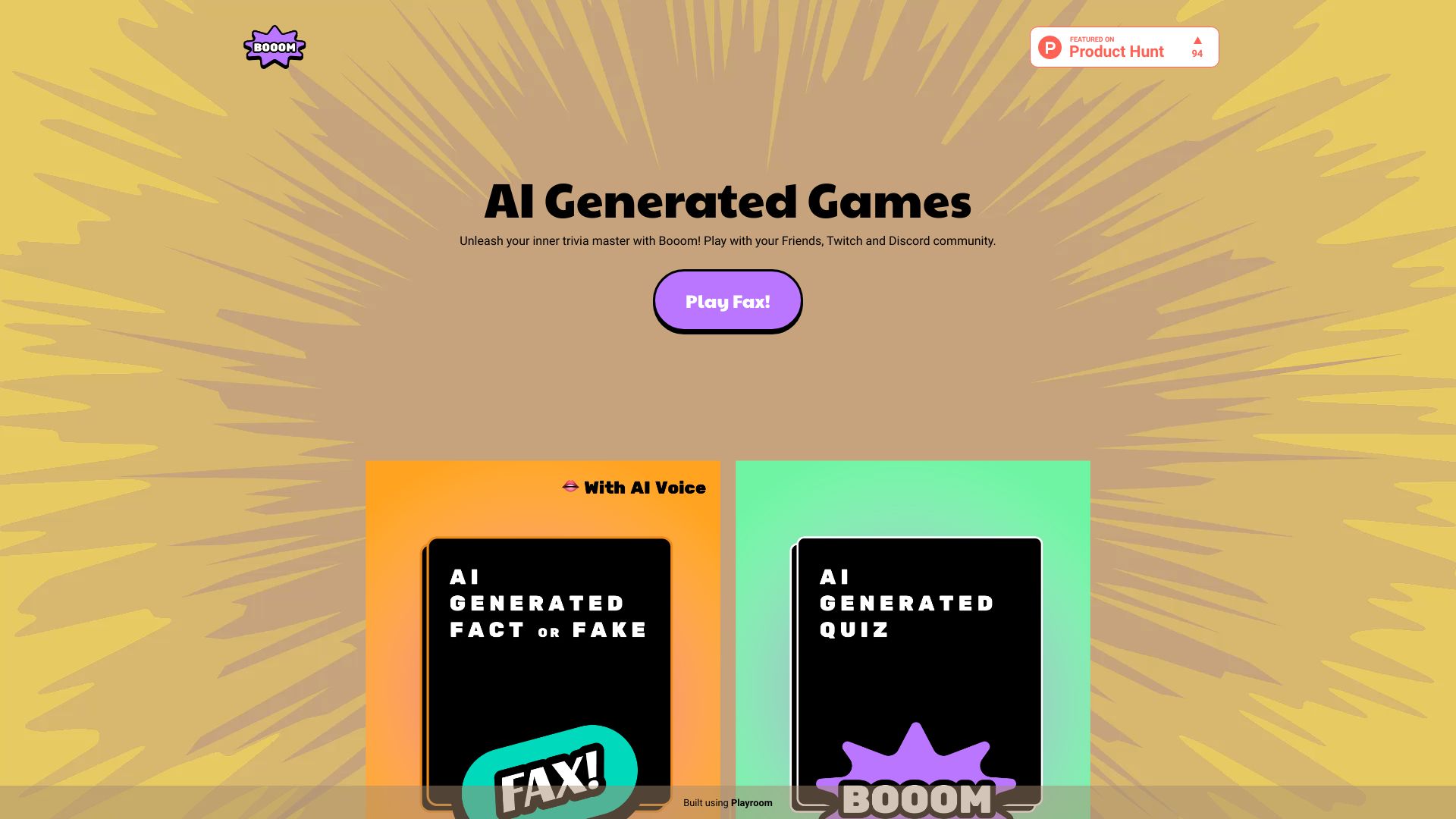 Booom is an AI-powered trivia platform that enables users to play interactive quiz games with friends and family.