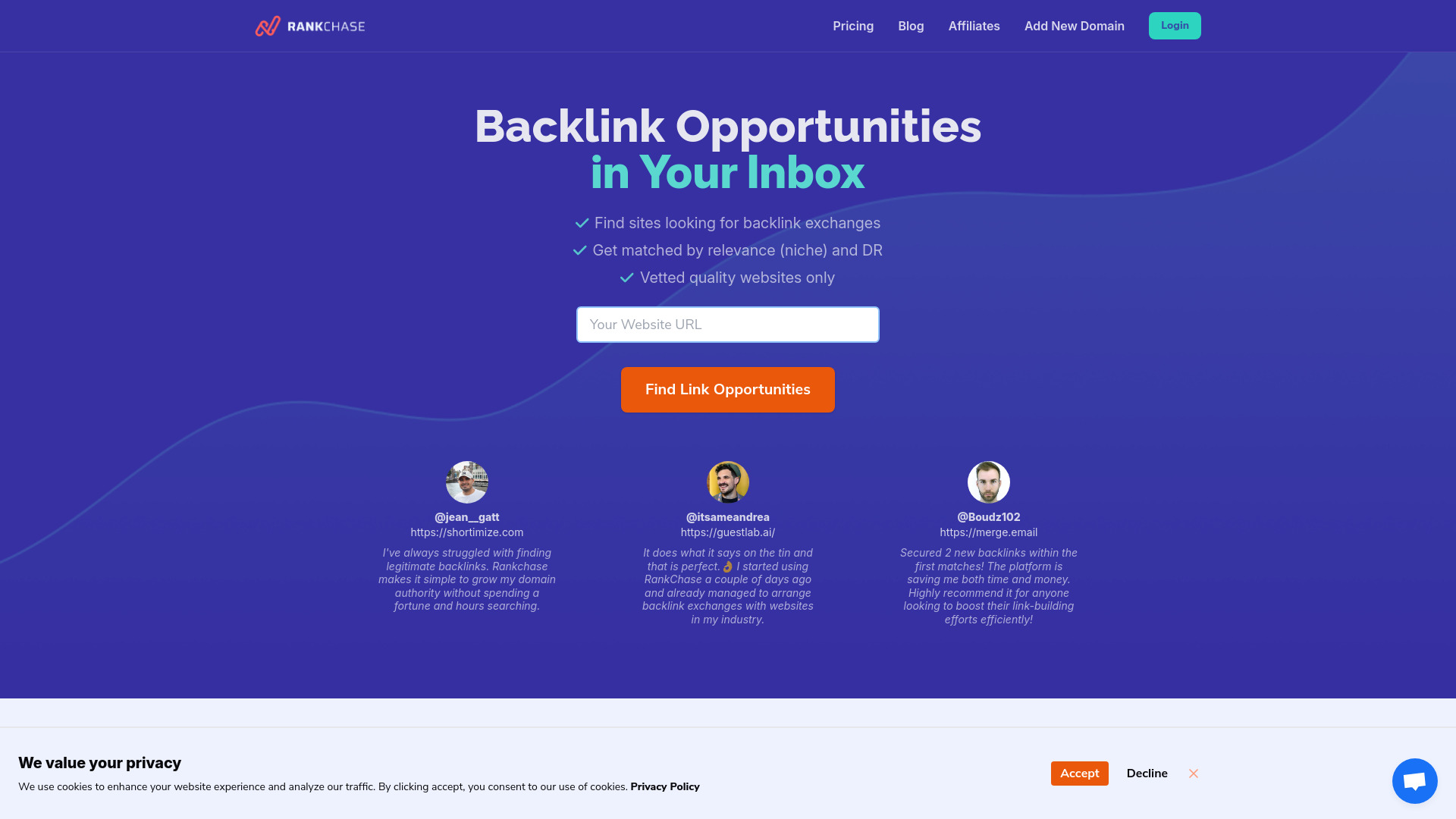 Automated platform for finding backlink opportunities for websites.