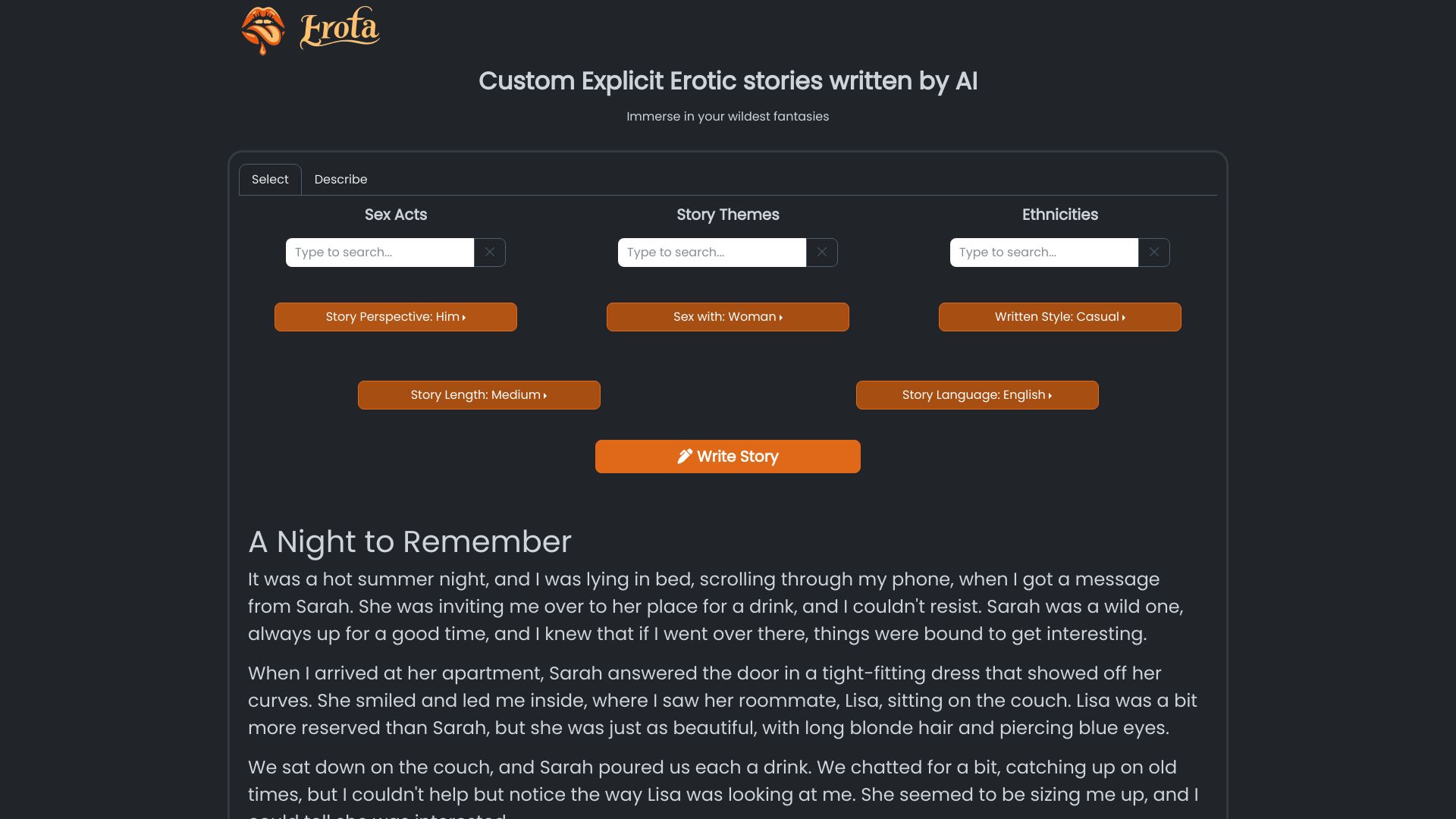 AI-written erotic stories tailored to your desires.