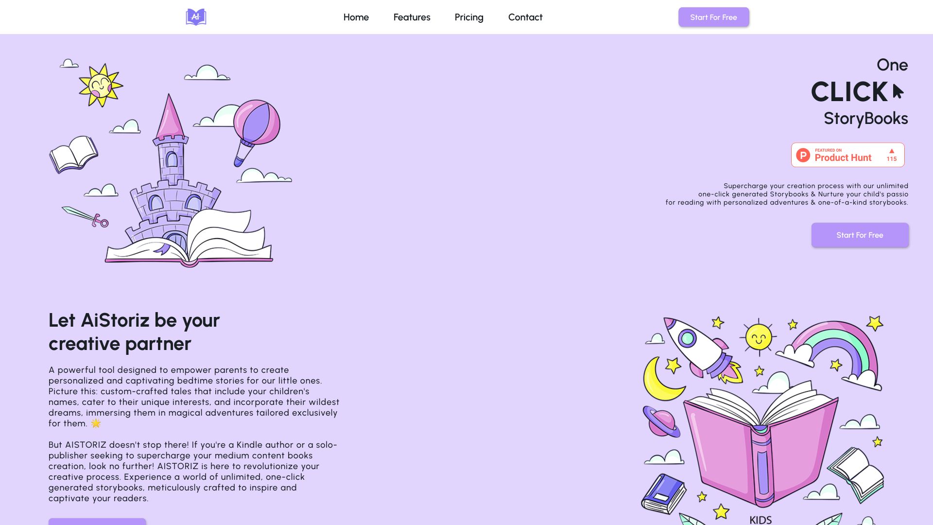 AISTORIZ is a platform that uses AI to automate storybook creation with one click.